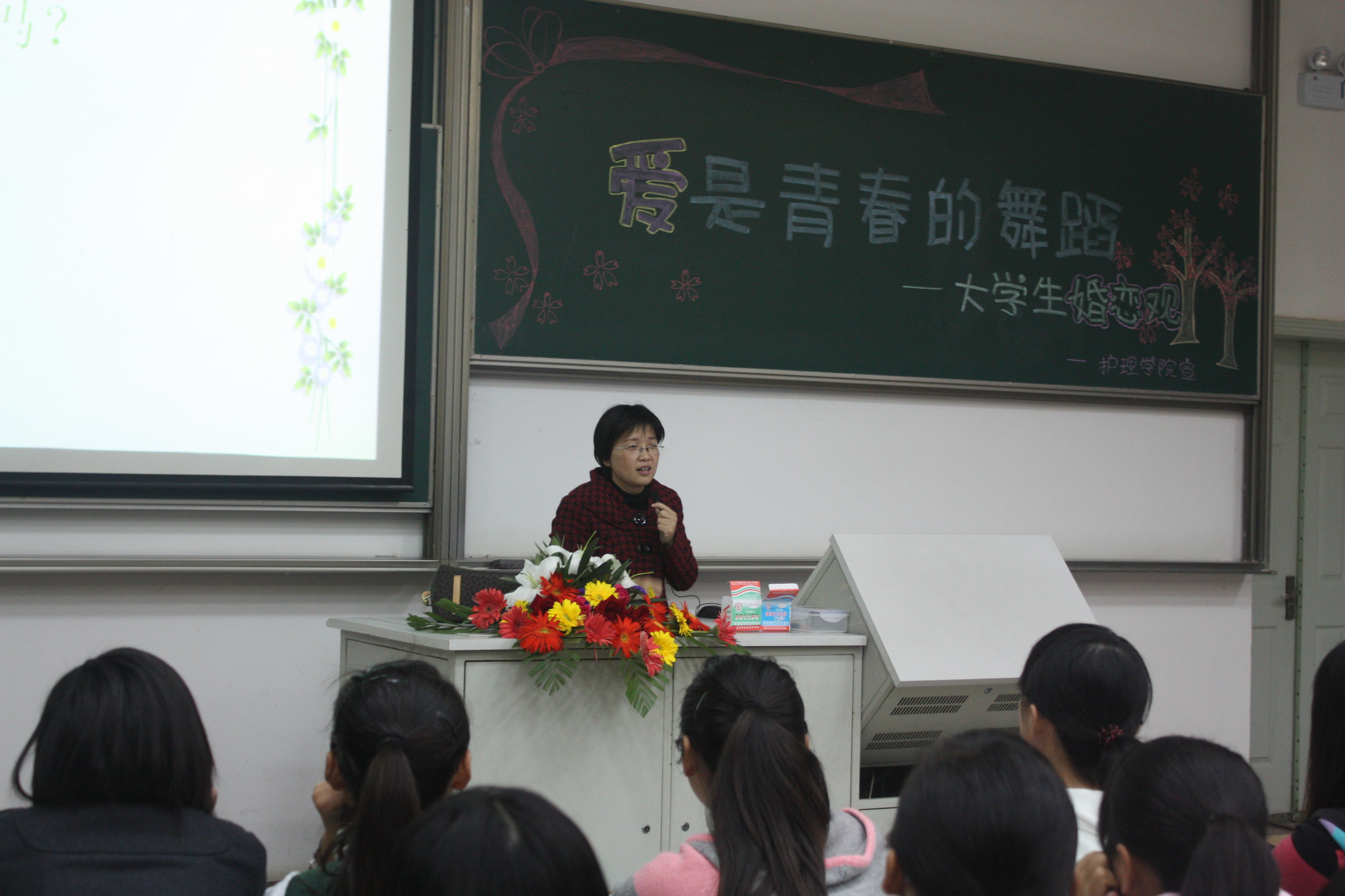 2011年11月3日18:30,MK体育(中国)在博学楼阶五举办了以“爱是青春的舞蹈”为主题的大学生婚恋的专题讲座,学院有幸邀请到南京航天航空大学心理健康教育中心副教授杨雪花老师担任主讲,吴菲老师也到场参加。
