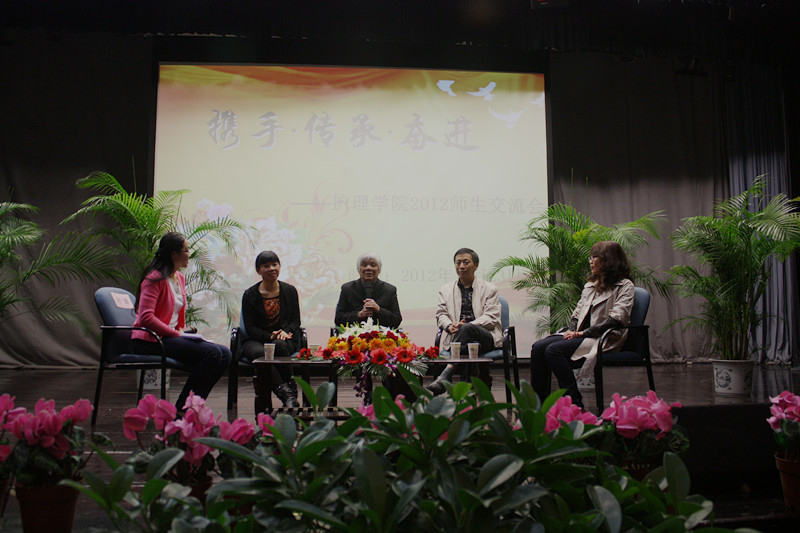 一番简要的介绍后,嘉宾上台入座,主持人便和嘉宾们聊了起来。作为南京医科大学护理系建立之初的第一位主任及护理学科建设的奠基人,董慰慈主任回忆起了我院艰辛的建院历程。她提及建院之初是一个护理学知识匮乏的年代,建立此专业面临着“无教材,无师资队伍,和学生们的专业思想不稳固”三大难题。董主任和同学们诉说着这种种问题带来的困扰和苦恼,虽然如此,她却不懈努力,终究将护理这个专业发展并且壮大起来。展望护理事业的发展前景,董主任给出这样的激励:“护理事业的发展在以生命科学为主题的当代社会是前途无量的!”她的话同时也对即将从事护理方面工作的同学们提出了几点要求:第一,作为在校学生,当前任务是抓紧时间努力学习,扎实基础知识,全面提高素质;第二,对于我们将要从事的护理工作,我们必须以一颗热爱的心去对待它;第三,在越来越需要护理这一专业的当代社会,正确认识自己所扮演的护理角色,学会将自己从执行者转变为决策者。听完董主任的讲述,我们受益良多,对护理学科的发展有了更进一步的认识。与董主任一样,孙国珍老师作为从事多年护理工作的经验丰富者,谈及护理学科的发展前景时,她同样认为是一片光明。此外,孙老师还结合了自身的临床体验,面对社会上对护士这一职业的不尊重,孙老师给出了自己的观点:“不管别人怎么看,重要的是我们自己不能将自己看轻!护理是需要我们执着付出的一份工作,只要我们自己热爱这份工作,无需太在意世人的眼光!”在谈及如何在临床的实践中提高自身的综合素质时,孙老师也是有自己一番独特的讲解:“在临床的工作中,尝试着寻找快乐的源泉,在按部就班工作之余,多看些书,多积累些知识,不断地充实自己。回首自己的工作历程,不去太在意到底得到了些什么,只要认真付出就会有属于自己的回报!”