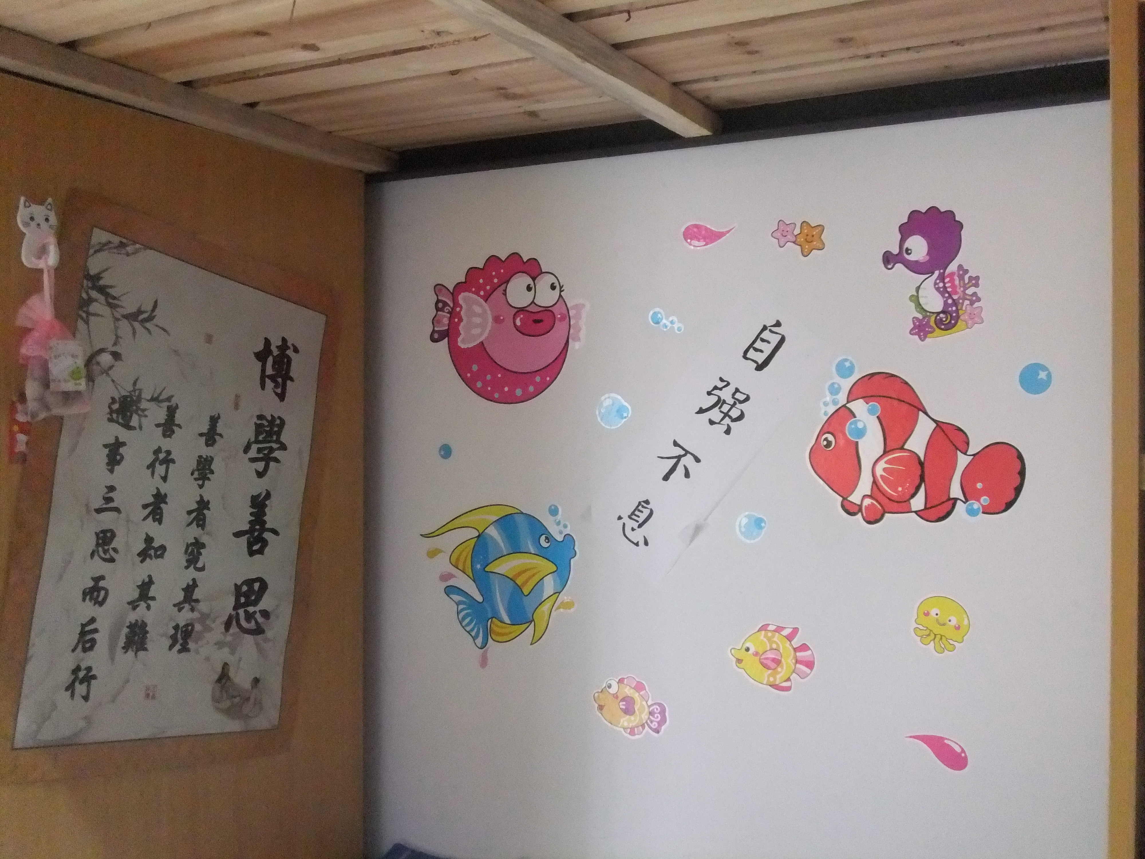 此次大赛设有创意特色宿舍、文化氛围宿舍、温馨和谐宿舍一等奖一个,二等奖两个,三等奖三个,最佳人气宿舍三个和最整洁宿舍一个。其中07栋101-2获创意特色宿舍一等奖,01栋522获温馨和谐宿舍一等奖,07栋301-2获文化氛围宿舍一等奖。此外10级01栋220,11级07栋202-2和12级05栋4单元301-3被评为人气宿舍以及01栋122最整洁宿舍。且看温馨宿舍一等奖的01栋522宿舍,一进宿舍,就恍若进了公主的房间,到处洋溢着温馨可爱的气息,其中一处就是粉色的‘天堂’:粉嫩蕾丝花边的床幔上缀着一个个精巧别致的蝴蝶结,粉底白色波点的床罩和枕头整齐的摆放在床上,一只穿着粉红色小洋裙的小熊坐在枕头边;再将镜头转移到书桌上,哇,不得不说主人公很有心思,红白相间的hello kitty盒子上躺着一只闭眼假寐的粉色兔子,旁边摆放着一篮欧洲田园派的花,杯子上方是一个用大丝带系着的小木板,上面写着‘Aza Aza Fighting!’……如此多各有特色的宿舍就不一一介绍了。