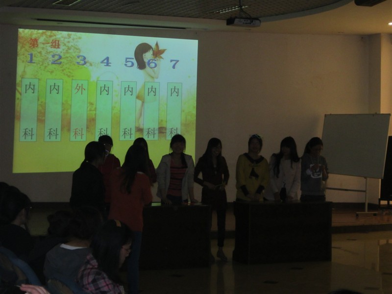 即将开始前,组织者向已经坐在座位上等待精彩演出的同学们分发零食和荧光棒,使观众们更加积极参与其中。随着主持人开场白的结束,大屏幕上播放着10级学姐学长们从入校时身穿迷彩服的军训到三年里各个班级或组织举办各种类型活动的照片。VCR中还有一段关于同学们对南京医科大学印象的采访,让同学们再次回忆起三年的点点滴滴,都不禁在心中默念:是我,这是我们曾经做过的事!正当同学们还沉浸在过去时,欢快的曲调在耳边响起,丁思羽等同学已在舞台上跳起了激情奔放、性感成熟的舞蹈《Crazy in love》,台下掌声四起,闪光灯一直闪个不停。开场舞后,同学们请嘉宾许晔星老师上台讲几句话,她的言谈中表达了对同学们的肯定和期望。赢得场上阵阵掌声。紧接着,陆依婷、张梦露和马竞驰同学唱起了歌曲串烧《再来一次小清新》,歌声即为心声,青春流乱而逝,沉淀下来的是那一樽醇厚的回忆。清新之风拂面而过,可总有一些话留念嘴边难以吐出,于是学生代表张笑兰走上舞台,代表即将离开的学子们说了说心里话。随后,平时优雅端庄的姑娘们幻化成青春靓丽,活泼俏皮的现代女孩,跳起了活力四射的樱花舞《不要不要》,曲调激昂澎湃,场下的同学们都情不自禁站了起来,汇成一片欢乐的海洋。欢呼雀跃之后,小品《般若菠萝蜜》古今结合,借用白蛇与许仙深入人心的角色和当今房价不菲的现实,女变男的反串,表演和歌唱都十分出色,观众们的笑声持久不断,再次活跃了现场的气氛。欢乐中,一群穿着护士服的表演者走上舞台,跳起了今天的话题之一《笑着说再见》的舞蹈。她们用微笑与歌声告别昨日的伤与痛,藏匿着离别前的不舍与思念,伴随着婉转动人的曲调,扣人心弦的旋律,心头的离别愁绪化成积极的未来畅想。在温馨的气氛里,大家玩起了游戏《谁是卧底》和《拷贝不走样》,现场的同学们都积极上台参与其中,各种搞笑情况时不时笑翻全场。最后胜利的同学们拿着一份精美的礼品笑着走向座位。一个多小时的持续激昂,同学们都有些累了,在几位同学的歌声中,此次晚会渐渐落下了帷幕。