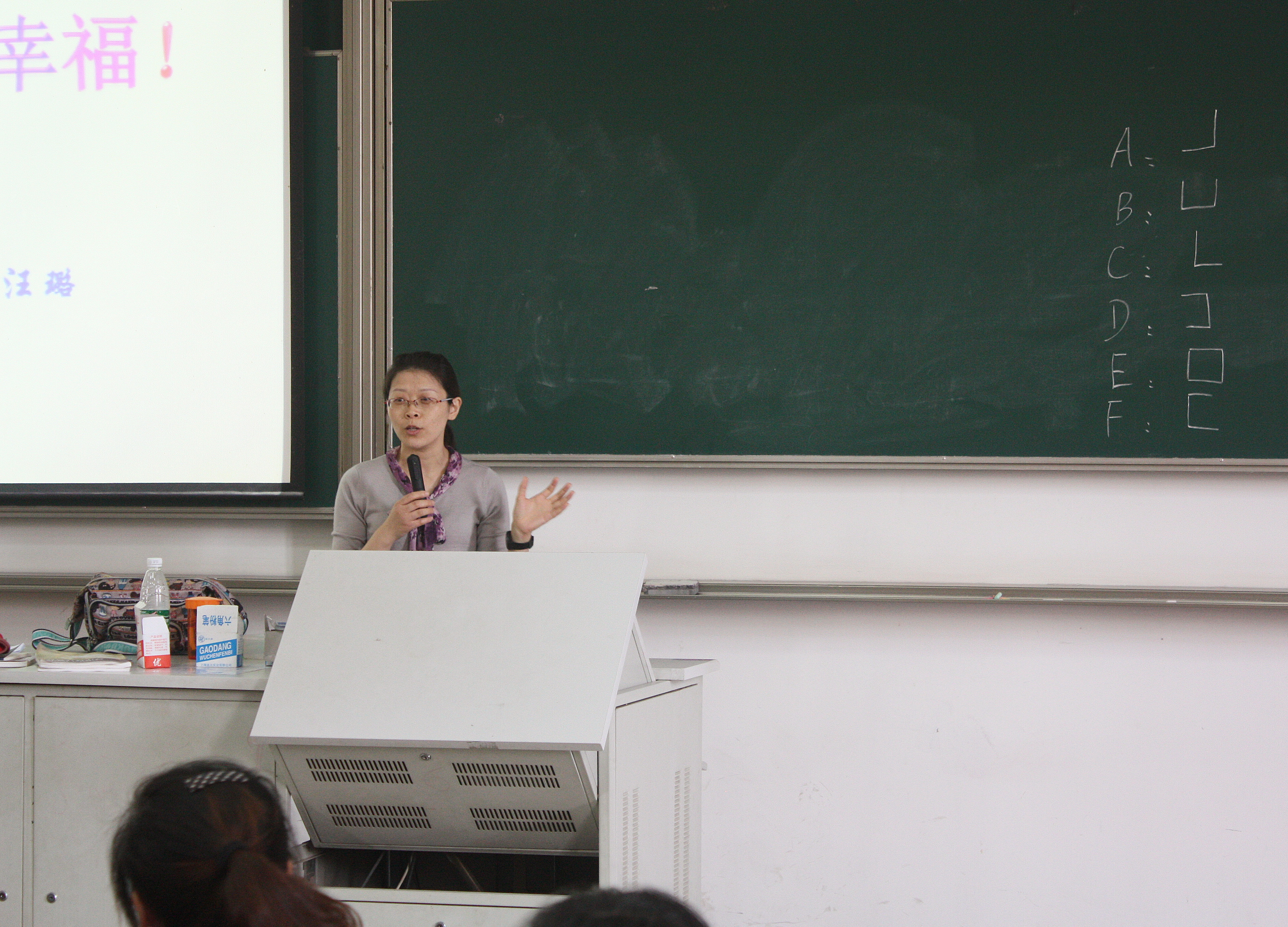 讲座一开始老师并没有急于讲ppt上的内容,而是别出心裁地在黑板上出了一道快速记忆题并请学生上台互动,气氛顿时活跃起来。紧接着,汪老师提出三个从古至今无数人都思考过的问题来开始她今天的演讲。首先,汪老师引用曾仕强先生的话,告诉在场的女孩子如何挑选另一半。为了使讲座内容更加通俗易懂,汪老师还就近举了南京某男大学生因失恋跳江的案例,旨在告诉我们爱情并不是生活的全部,心里有郁结时要及时找人倾诉,而不是憋在心里郁郁寡欢。其次,汪老师放出一张我们事先都不知道是女性内生殖器剖面图的图片,让我们猜猜这幅画是什么。台下讨论热烈,答案五花八门,当我们知道答案后都大吃一惊,感叹人体结构之奇妙。接下来,老师引用香港某机构的连载漫画来向我们展示新生命诞生的过程,当同学们看到一个小生命从无到有的奇妙过程,脸上都露出惊讶的表情。最后,汪老师告诉我们无保护性性行为的危险性,举多个例子来告诫女孩子们要爱惜自己,要对自己的身体和新生命负责。在讲座即将结束之际,汪老师衷心祝福在场的每一个同学都能找到幸福。