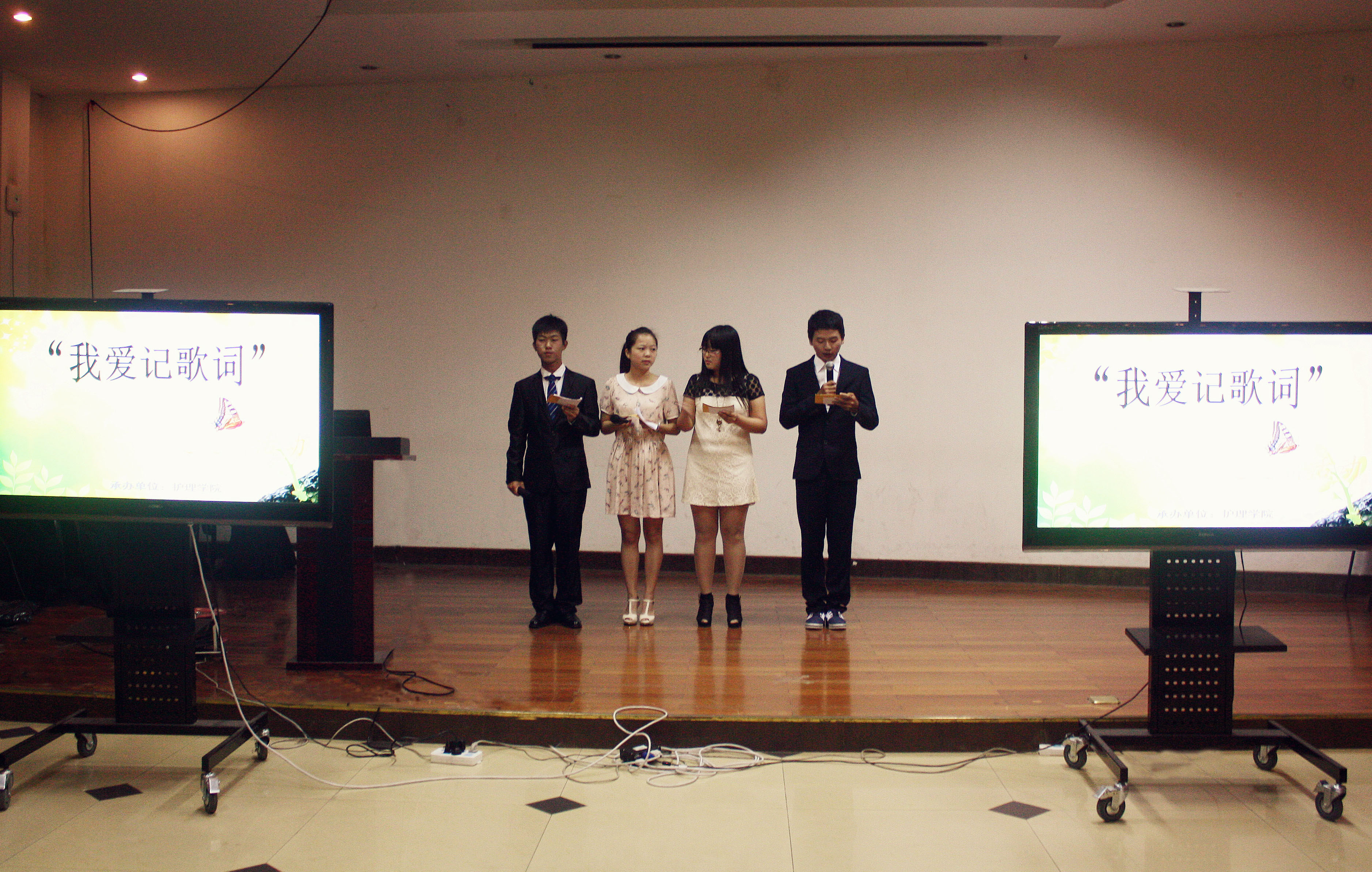 2013年9月28日下午6点30分,MK体育(中国)在大学生活动中心多功能厅举办的“我爱记歌词”活动正式拉开帷幕。本次活动是由12级护理3班组织的,同时还请来了不少其他学院的同学们,现场十分精彩!