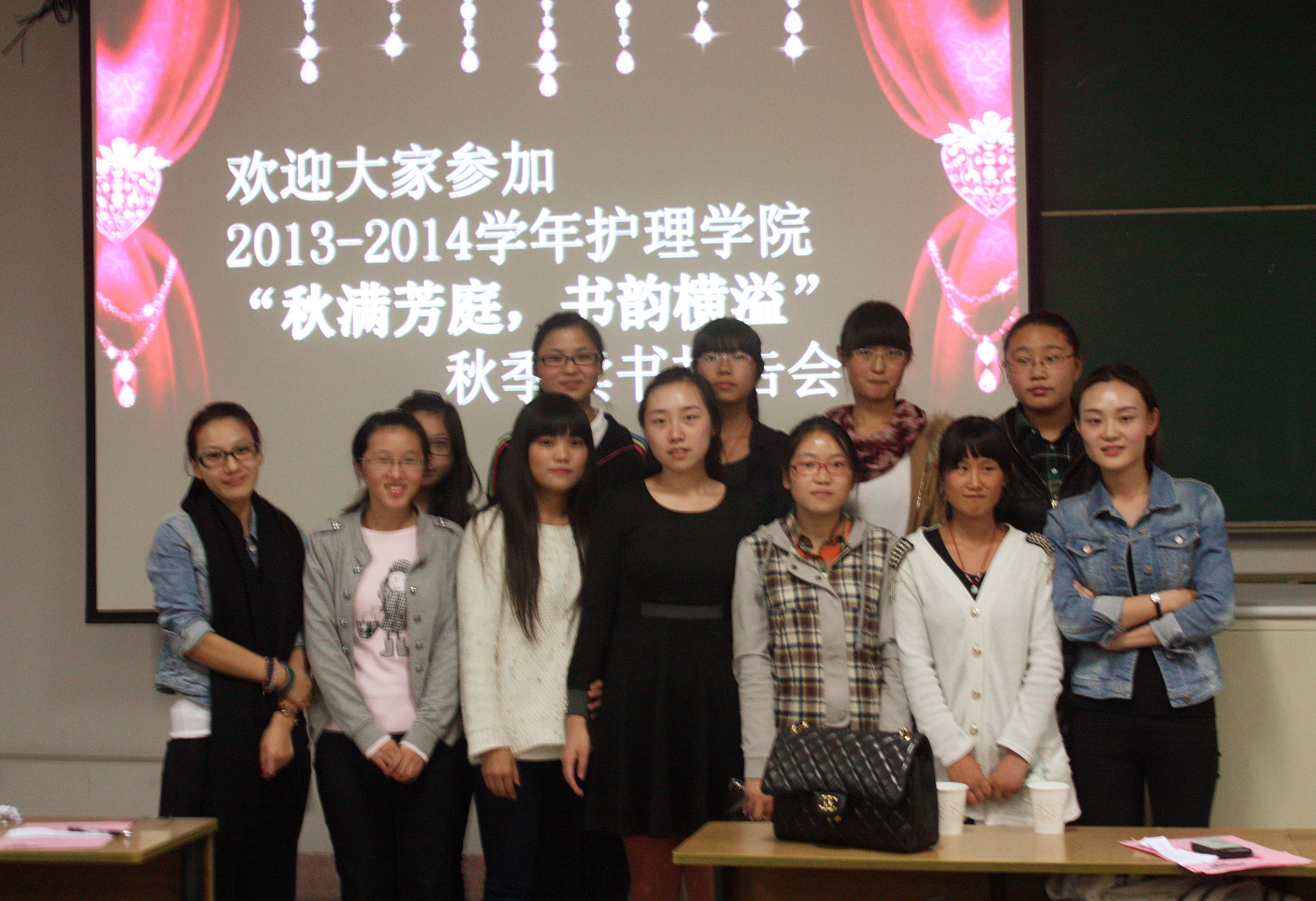 2013年10月21日晚,由MK体育(中国)策宣中心主办,2011级护理5班承办的2013-2014年度秋季读书报告会“秋满芳庭,书韵横溢”在K215举行。吴菲老师和付梦楠老师作为专业评委莅临了读书报告会,院学生会主席王玥,团总支副书记徐颖,蒲爱园院长杨兰婷和策宣中心主任蒋慧敏也作为专业评委参加了报告会。