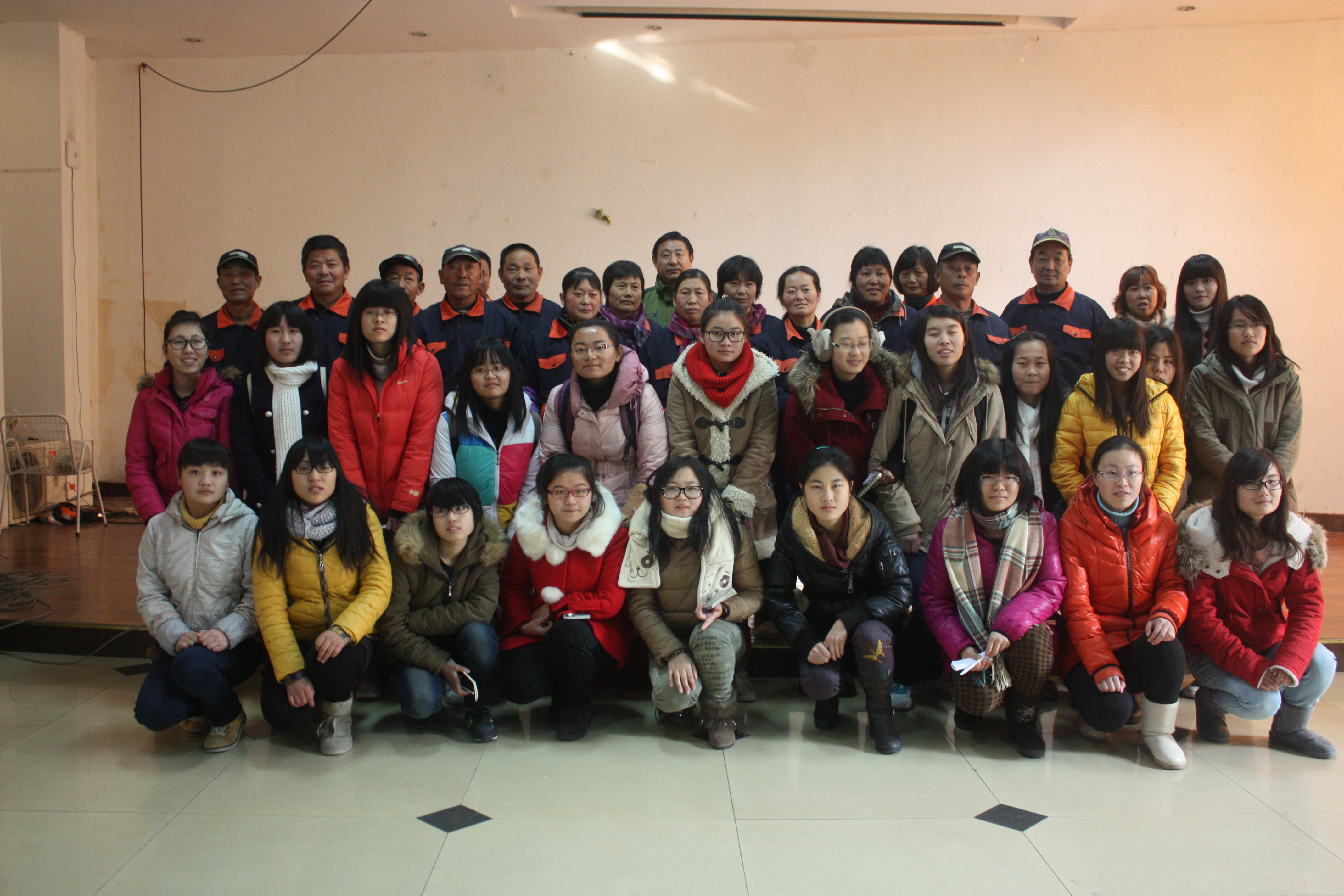 2013年12月21日下午一点半MK体育(中国)在大活多功能厅开展了慰问绿化工人活动,此次活动由策宣中心主任蒋慧敏组织策划,绿化工人代表张老师、全体绿化工人和MK体育(中国)各班同学代表参加。