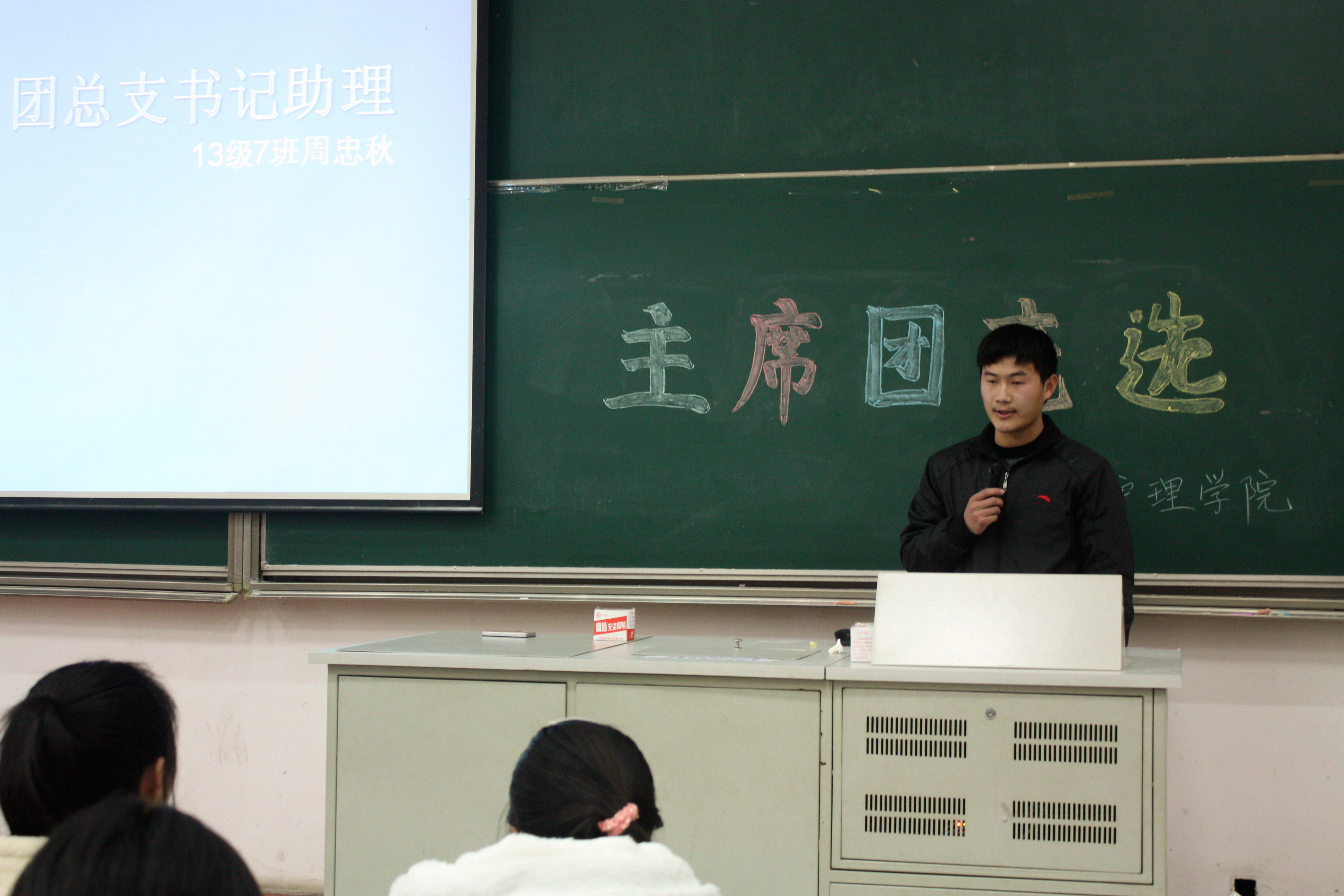 2014年2月24日下午4:30,我院在阶三举办了主席团换届竞选大会。此次大会邀请了王丽丽老师、吴菲老师、付梦楠老师和原主席团成员作为专业评委,同时,会议也请了各班学生代表担任大众评委。