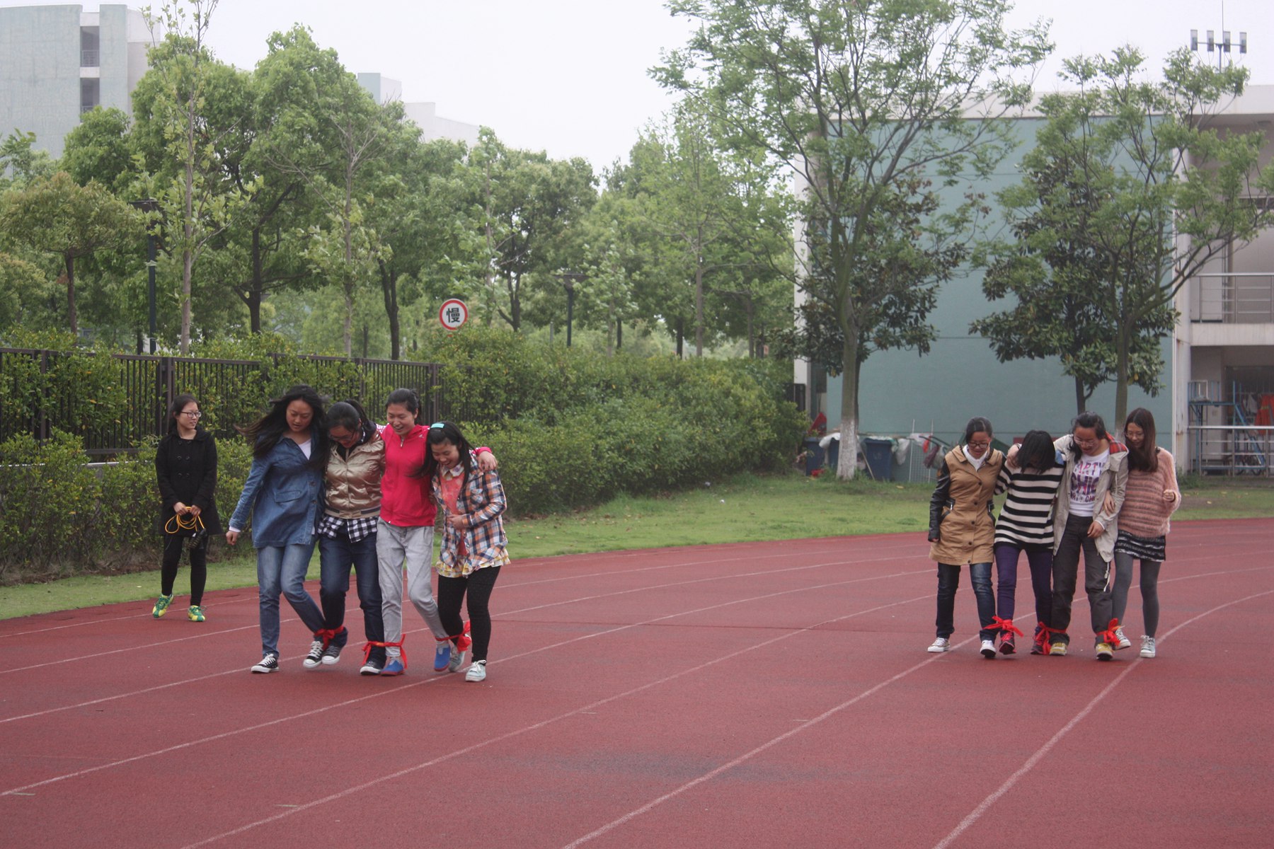 比赛开始前,体育部部长及其所有干事带着借来的体育器材早早的来到操场,为比赛的正式开始做准备。运动员们也准时赶到操场,做着热身准备,踌躇满志。此次比赛总共有三个项目,包括单脚火车跑、四人五足和双绳跳。单脚火车跑需要六位同学一起参加,后面的同学需要抬着前面一位同学的脚,然后六位同学共同跳跃着进行。虽然行进的过程有点困难,但是参赛选手还是坚持着不停地跳跃,最后在欢笑中结束了这场比赛。