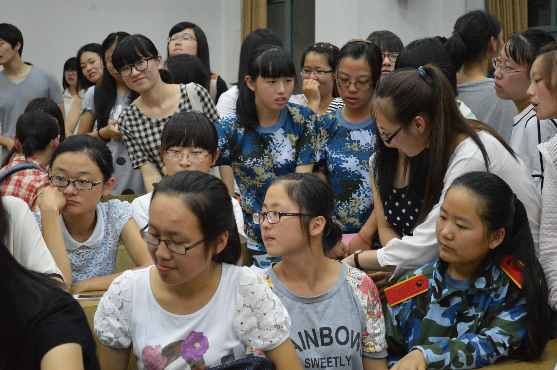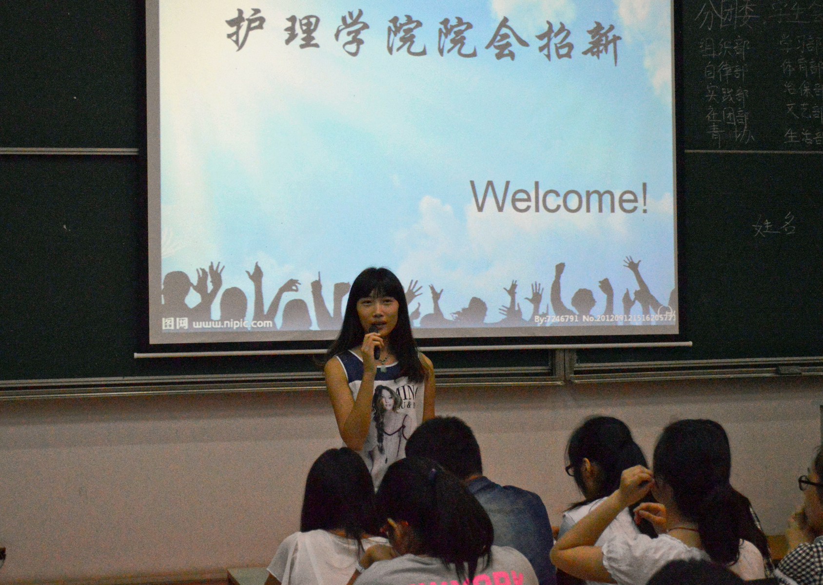 招新还未开始,已经有很多14级新生来到了阶梯教室,期待着招新工作的开始。6点半招新工作正式开始。首先由各个机构的会长及各个部门的部长进行部门介绍。各个部长的介绍都各具特色,有的幽默风趣,将在场的新生们的目光都吸引住了,有的则是针对学弟,力求让更多的学弟加入自己部门。当然也有些部门则是坦言希望更多学妹加入他们。