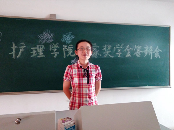 在王丽丽老师进行了简单的对国家奖学金申报情况的介绍后,答辩会正式开始。此次答辩由两位特意从实习点上赶回学校的11级同学开始。她们的台风沉着镇定,自信地向大家介绍自己三年来在校内校外取得的各项成绩。随后上台的五位12级同学用自己优秀的成绩和丰富的实践经历向我们展示了他们的不俗实力,对评委提问的回答也体现出了他们出众的口才和应对能力,令现场观众和评委老师赞不绝口。而接下来参与答辩的四位13级候选人也不甘示弱,用同样精彩的表现征服了评委和观众,并且用幽默却不失严谨的答案巧妙地应对了评委老师的提问,使整个答辩会精彩纷呈,惊喜不断。