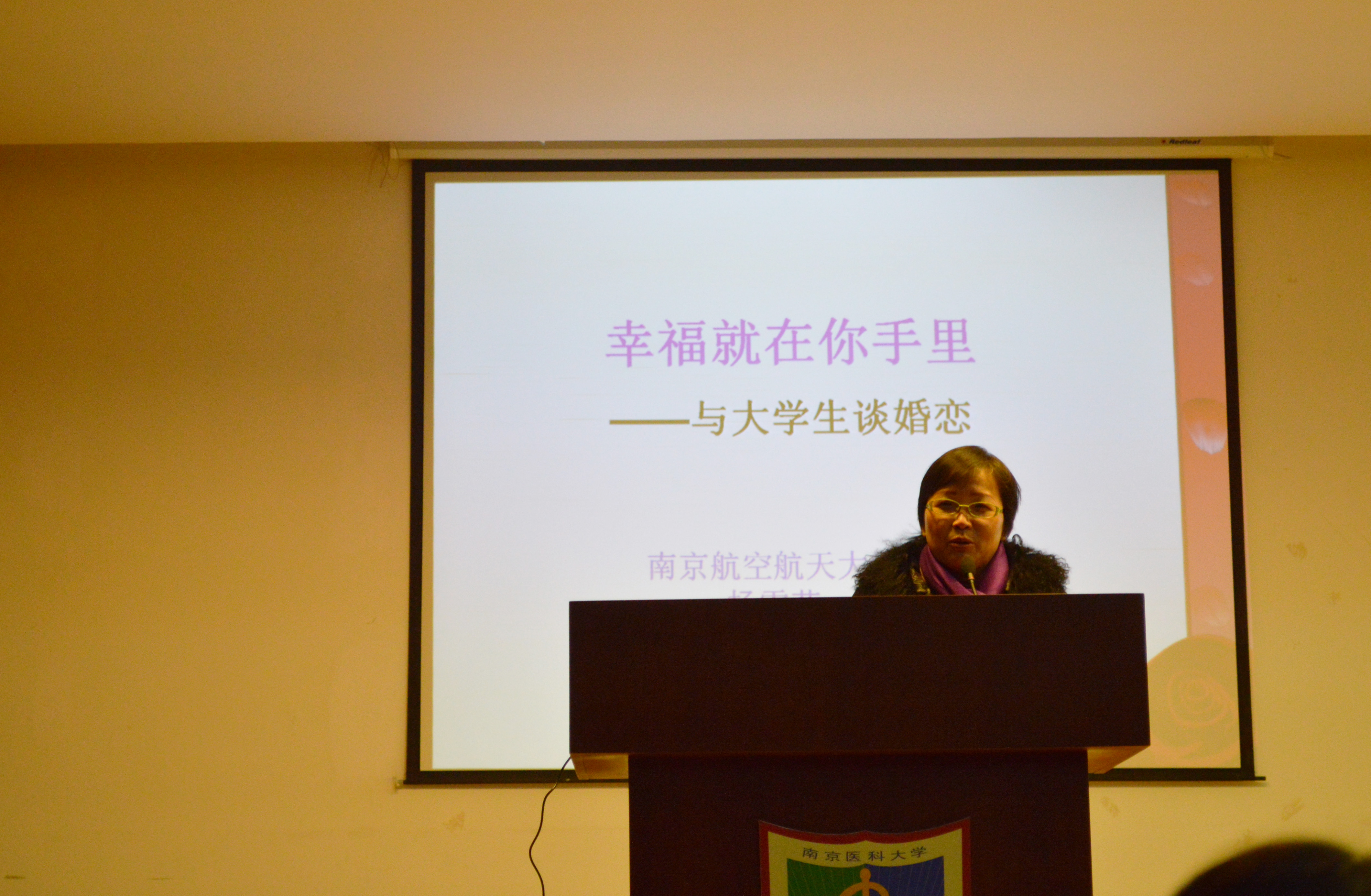 2014年12月2日,在mk体育在线官网技术部组织下,由南京航空航天大学的杨雪花教授主讲的有关“大学生婚恋观”的讲座在志诚楼报告厅开讲了。杨教授开场以讨论大学生心理问题带动了场上的气氛,同学们的脸上挂满了笑容,可见教授演讲的魅力之大。
