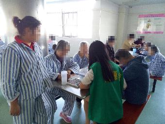 江宁二院活动从2013年开始进行,今年已经是第三年开展,活动的组织和流程已经比较成熟。从第一次精神健康培训到第二次志愿者直接培训,所有同学对精神病人的症状,接触方法以及注意事项已经做到心中有数。在进入病区前,由领队再次强调活动中的基本注意点,在办公室准备好活动工具、歌词本、画本、棋牌、毛笔宣纸等后,大家充满期待与些许不安地前往病区。
