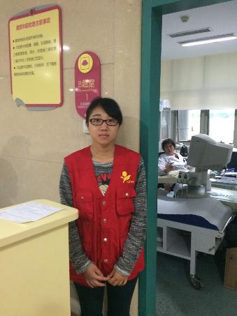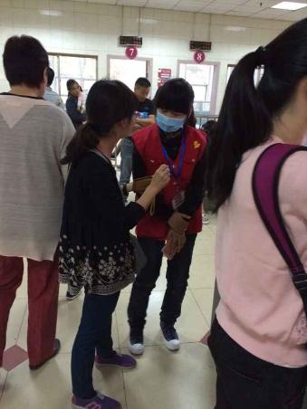 她们一行人来到志愿者之家,老师安排好每个人的任务后,大家迅速穿上志愿者服,戴好口罩,去了自己负责的地方。因为今天各个学校的志愿者都不少,所以她们都被两两分组,一组去了眼科治疗室,一组去了B超室。B超室可以说是“人满为患”,因为做B超需要有比较强的尿意才可以去检查,有的孩子排完队到了他的时候还没有,有的孩子又快忍不住了,一开始有点忙乱,两个志愿者一直在不停的跟家长们协调着,虽然很忙很累,但是看到家长们的满意,志愿者们也就很开心了。另外两个在眼科治疗室的志愿者也没歇着,一个在医生办公室里面主要负责维持在里面等待的家长和孩子的秩序以及根据不同散瞳时间的孩子让他们进来验光,还有就是医生忙的时候,先帮孩子们验光,因为现在都是仪器的,所以也不太需要太多的专业知识,当然还是有很多注意事项的。而在外面的志愿者责负责收集病历本,并标注开始滴散瞳药的时间,同时指导孩子们如何滴散瞳药以及回答家长的各种问题。