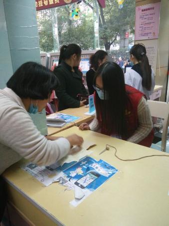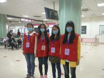在经过了医院老师的简单培训后志愿者们换上红马甲,戴上口罩就来到了自己的岗位。两位同学被分配到了一站式服务台,在那里他们将面对来往人群各式各样的就医咨询,尽管人流量很多,周边环境嘈杂,但志愿者还是以微笑面对病人家属,耐心仔细地回答他们的每一个问题,并对遇到困难而无法解决问题的家属积极伸出援手……