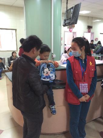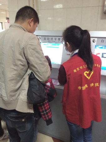 因为事先有过一定地培训,所以对自己要做的事情,还是有一定的了解。所以,当同学们到达医院的时候,阿姨也没有多说什么,为我们又讲了一些注意事项之后,就给我们具体分配了一下岗位和人物。同学们一行五个人,两个在了内科,两个在了外科,还有一个就在自动挂号机处。因为今天是周六,医院的人流量还是非常大的,尤其是服务台和自动挂号机处。时代在不断进步,医院的设备也紧随时代的步伐。所以,还是有很多人不清楚自动挂号机的具体用法,这时候就是志愿者帮助大家的时候了。而服务台处也是非常的繁忙,因为有的病人家属不知道具体的看病流程,这时候,就是志愿者为他们服务的时候,回答他们的各种问题,为他们取票等,更多更好地为他们服务。一上午的时间,就这么悄悄地流走,结束一上午的志愿活动,终于到了吃饭的时间,在这里还是要说一句哦,儿童医院的伙食还是棒棒滴,我们吃得还是很开心的。