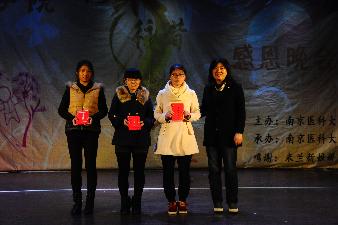 从某种意义上说,感恩是构建和谐社会的基础。社会给予了我们和谐安宁的环境,我们有责任用一颗感恩之心来回报一切。薛琪、马杰、赵清等9人被授予2015年度医院阳光志愿者的称号,鼓楼医院、南京市第一医院、儿童医院、江宁二院、秣陵敬老院被评为优秀志愿服务基地。辛勤付出的白衣天使也许得不到家人的理解,但他们仍然坚守在自己的岗位上,由王珏、丁一凡、库尔班江表演的话剧《护士》让我们对未来的职业有了一个新的定位。