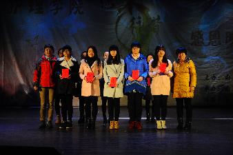 亚东奖学金一直致力于支持我校优秀同学的发展,为他们未来的求学之路提供有力的帮助,12级的施雯雯等三位同学以及13级的郭立益等三位同学、14级的朱涵菲等三位同学获得了此次奖学金。“春蚕到死丝方尽,蜡炬成灰泪始干。”老师是知识的象征,是爱心的使者。他们用生命呵护我们成长,用清贫诠释人生。他们将我们引入知识的殿堂,帮我们把握人生的航向.他们为我们做出了行为的表率,用爱心托起了明天的太阳。我们要感恩老师给予我们修养和文化,感恩老师给予我们放眼世界的慧眼。丁亚萍、李现文、钟亚萍三位老师被授予最美教师的称号,虽然他们没有来到现场,但是他们用视频传达了对同学的关心以及对学院的感谢。唐慧婷、羊洋、嵇艳、赵春华四位老师以及十六名学生用歌唱和手语的形式向我们展示了《和你一样》。父母给予我们生命,我们在他们的关爱中成长、成才、成家立业。感恩父母就是懂得孝顺。孝的源泉就是爱,爱是父母与子女之间剪不断的纽带。父母之爱是无私的,它沉浸在万物之中,充盈于天地之间。顾芳臣、吴凤怡等十三位同学用暖心诗画的形式表达了对父母的感激之情。音乐小品《长大》由赵康等17人演绎,诠释了父母对儿女们不变的爱。