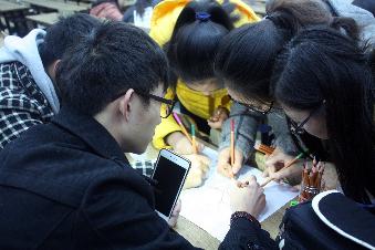 在此次活动中,同学们积极参与,团结协作,共同完成作品。活动开始,每个小组成员都迅速进入状态,由于提前做好了分工,每个人的工作都进行得有条不紊,看他们一个个认真的表情,在场的人似乎受到了感染,沉浸于作品创作中。通过图画上的画面和色彩表达心境、想法,倾诉喜怒哀乐,把最美的东西用最美的方式表现出来。不得不提的是外联部和青协组成的天霸动霸tua小组,他们完成速度最快,而且在最后获得了最佳艺术指导奖,其次是科创部和勤工助学部的science小组获得了最佳另类奖,保障部和秘书部NDA小组的最佳形象反差奖,通讯部和技术部回眸小组的最佳小清新奖,自律部和文艺部宇宙第一帅组的最佳视觉效果奖,学习部和社团部姝媛组最佳文艺范奖,实践部和组织部组践小组的最具特色奖,宣传部和办公室凤凰于飞小组的最佳创意奖,以及体育部超感小组的院斯卡金像奖。