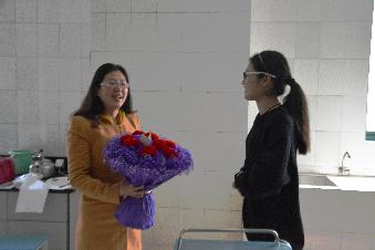 3月8号在K516秘书部部长将一束康乃馨送给内科教研室的老师,祝愿教研室的各位老师节日快乐,老师们收到花很开心,同样也对蒲爱园表示感谢。