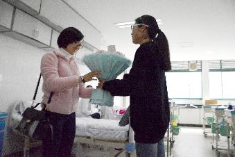 3月8号在K516,秘书部部长又将一束康乃馨送给内科教研室的老师们,祝愿教研室的各位老师节日快乐,老师们收到花很开心,同样也对蒲爱园表示感谢。