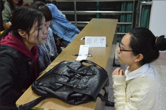 介绍过后,招新正式开始。同学们立刻行动起来,走向自己心仪的部门,积极向在场的工作人员介绍自己,希望能够加入其中。也有一些拿不定主意的学弟学妹,权衡着几个部门,希望找到适合自己的部门。前来面试的同学们积极回答各部门负责人的提问,有些同学滔滔不绝,回答有条不紊;有些同学则稍显稚嫩、紧张。但无论紧张或从容,他们都在努力展现着自己最优秀的一面,让学长们对学弟学妹们身上透露的朝气所感染。空气中洋溢着青春和自信。经过一下午的甄选,各部门相继敲定了干事的人选。同学们认真的答题,在这过程中体现了这批同学的整体素质。相信他们都是优秀的新一代,将会为以后工作顺利开展打下了一个良好的基础。