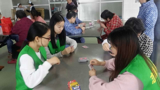 带着蓬勃朝气的志愿者们热情主动地走到病人们身边,与病人们聊天,并开始耍宝卖萌。志愿者们虽然有点害羞,但是却能把病人们逗乐。志愿者们秉持着传递快乐的宗旨,与他们下棋、唱歌、读书以及练字等。志愿者们分散在活动室里,为病人们带来笑容与温暖。