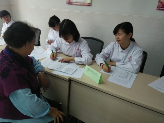 早晨8:00,志愿者们开始接受培训。主要是培训问卷地填写,包括老年抑郁量表、跌倒坠床量表和Cog12量表等。而更多的则是实践操作,包括测血压血糖、握力和三米起立行走。小组成员都跃跃欲试,想要把握住这难得锻炼的机会。接着,大家开始了录入信息、问卷调查、测血糖血压、握力、三米起立行走和礼品发放这一系列流程。老师很耐心,掌控着全局。爷爷奶奶们素质都很高,其中不乏南大,南药退休的教授,他们退休的工资也是相当的高。但是他们的年纪大多在80岁以上,听力和视力下降,需要大家提高音量。此外,志愿者们在记录信息时,要记录药名,很多药名大家都不熟悉,但是在不断地询问中,大家慢慢了解了这些药物的作用,也知道了许多降压药、降糖药和降血脂的药物。