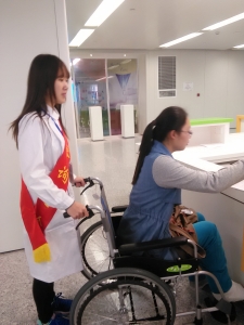 在志愿活动开始之前,医院的老师给志愿者们简单地讲解了医院的大致布局,以便大家更好地开展服务。此次,同学们的志愿服务时间是上午8:00到11:30。在老师的安排下,赵芳和易怀秀同学在大厅门口引导;仲婷婷和周文雅同学在二楼导医;郑鲜和薛晓彤同学则分别在一楼和三楼的楼梯处指引。