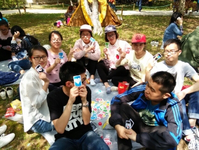 在绿博园门口,同学们纷纷拍照留念。在烧烤园里,班长王慧和生活委员方晓雅同学安排了烧烤事项后,同学们拿出烧烤材料,铺好锡箔纸,由擅长烧烤的张科和朱海宝同学“掌勺”,气氛十分融洽愉悦。继而,同学们去了游乐场,并进行了吹气球比赛、“护花使者”PK以及真心话大冒险等游戏。获胜者将获得礼品。