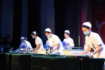 本届护理操作技能大赛共分为四个环节,生命体征测量,心肺复苏,静脉输液,无菌技术基本操作。16名选手通过层层考核,最终进入本次大赛的决赛环节,她们凭借扎实的护理专业知识,娴熟的操作技能,严谨的医护精神和热忱的护理情怀赢得了评委老师和台下观众的一致认可。