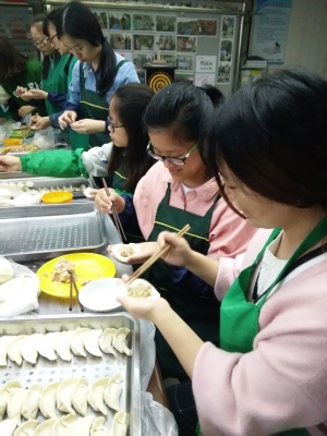 时间过得很快,9:40还没到,两千多个饺子就被包了出来。由于数量较多,大家只好送到食堂用蒸汽蒸,饺子20分钟就蒸熟了。志愿者们将饺子送到了病人所在的各个病区。将第一批饺子包出来后,剩下的饺子就没有那么急了。大家一边动手一边聊天,也吃到了自己的劳动成果,志愿者们都觉得很有成就感。