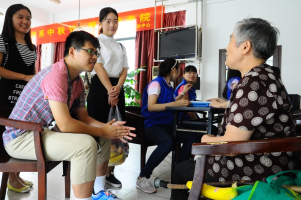 签约结束后,党支部成员紧接着进行了中秋献礼活动。他们将带来的水果与糕点发放给老人,并与之交谈,询问他们的生活状况和身体状况。在场的老人都很热情,接受了他们的礼物,也很乐意分享他们的生活体会以及旧时往事。大家都被老人的热情所感染,不时传来爽朗的笑声。据了解,秣陵敬老院的老人,大都已年近七旬,平时也只有在院里转一转,或者和院里的其他老人聊聊天,难免会感到孤独。他们的亲人也因工作的繁忙,偶尔才会来看望他们。在党支部成员的陪伴下,他们那颗孤独的心似乎安定下来。在感受浓浓关怀的同时,老人对生活又充满了期待,在感恩之心的牵引下,他们得到了心灵的慰藉。