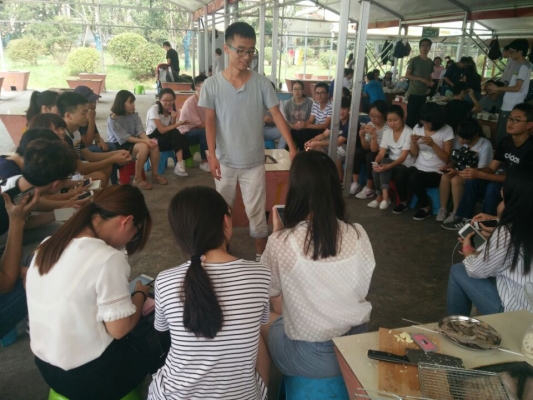 在一些小游戏之后,大家便围着烧烤台坐了下来。各自分到食材后,大家开始各显神通,不一会儿,烧烤场便飘起阵阵香味。大家边吃边聊,偶尔某个烧烤台突然蹿起了火,惊心动魄之余,也增添了活动的趣味性。大家吃完后,在双方班团的组织下,又进行了真心话大冒险的游戏。女生娇羞,男生豪迈大方,引得其他食客纷纷驻足观看。