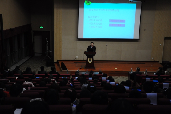 首先,陈书记介绍校学生组织的分类及校园文化活动的开展情况。他说道:“学生组织的强大生命力在于适应学生的需要,无论是教育者自身安排设计的学生会,还是学生自发成立的社团,都发挥着重要的不可替代的作用。”学生组织功能的实现在于产生一个集体的行动,形成“教师-学生组织-学生干部-学生活动”的完整体系。陈书记告诉大家,我校的学生组织按功能划分为思想引领、特色实践以及自我服务三类,体现着“大学工”理念和“平台”理念。特色实践功能类的学生组织有四个校团委直属团支部,即校报记者团、国旗班、民族乐团、管乐团以及实践部、志工部、青年志愿者协会、红十字会学生分会,它们开展了特色鲜明丰富多彩的医学院校社会实践活动。