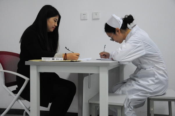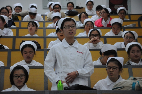 本次比赛采用团体赛、多站式,比赛合计5站,分别为理论答题1站、案例分析2站、情景模拟2站,站内每项答题计10分。每站比赛时间10分钟,各队换站时间2分钟。根据各队总成绩排名,评出最终名次。其中情境模拟是模拟患者和护士之间的沟通,是为了让同学们更能明白医护沟通的重要性。这也是同学们和老师都很重视的一个部分,因为往往医患问题大部分出现在沟通上,而有效的沟通则能或多或少规避这些问题。在情境模拟中,有的同学能够有效地和患者沟通,而有的同学却只知道完成自己的任务而不注重沟通,忘记了此次大赛注重的是人文。