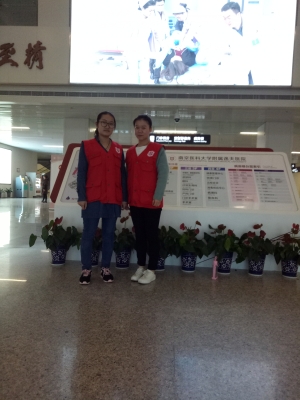 1116日周三的下午,来自mk体育在线官网159班胡君淇与胡楠楠和另一位来自基础医学院的男同学组成了志愿小组,像往常一样来到第三附属医院即逸夫医院开展志愿活动,逸夫医院仍然有条不紊的忙碌着。