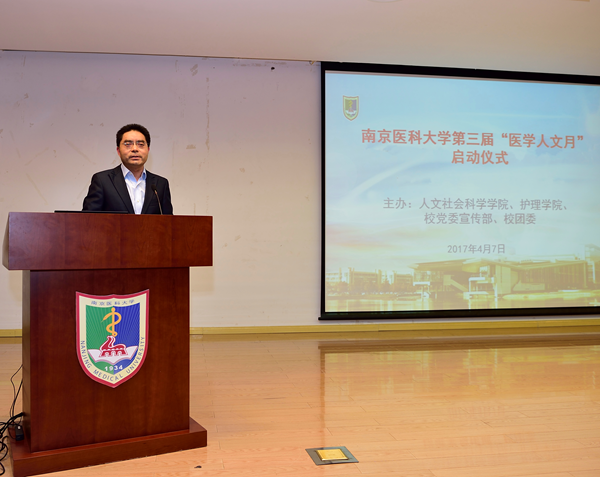 4月7日晚6:00,南京医科大学第三届“医学人文月”启动仪式暨首场讲座于至诚楼三楼报告厅举行。此次活动由人文社会科学学院、MK体育(中国)、校党委宣传部、校团委联合主办,主办方各位领导,MK体育(中国)、医政学院的师生们参加了此次活动。启动仪式由人文社会科学学院王锦帆书记主持。