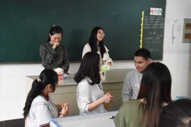 工艺花制作环节,志愿者和孩子们一共分成五组,开始制作手工作品。制作伊始,志愿者手把手地教孩子们如何将花枝和花瓣串在一起。渐渐地,孩子们在熟悉制作方法以后,制作的速度越来越快,热情也越来越高涨,最后做出的成品别有一番风味。而这些手工品与外面购买所得到的不同,因为每一个小花都是志愿者与孩子们亲手所制,蕴藏了志愿者与孩子间的爱与温暖。继而,主持人用生动形象的语言给同学们进行了健康宣教,关于常见的基础疾病防范措施。随后进行了有奖竞答,五个组的代表分别回答了问题,其中Flying Sky队的季嘉仪同学给人留下了深刻的印象。