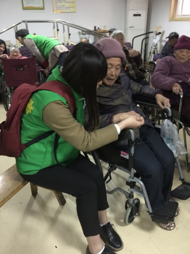 2017年4月9日下午,mk体育在线官网16级护理4班的四位志愿者,来到江宁区幸福园老年公寓进行志愿活动。虽然是阴天,天空中还飘着几滴雨,但仍没有阻挡志愿者温暖的爱心,给老人带去最诚挚的问候。