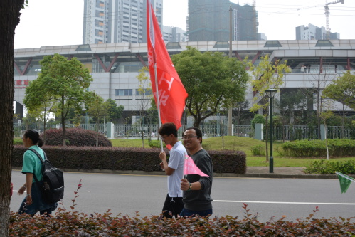 活动开始后,师生结对,手举鲜艳的彩旗,加入到行进的队伍中。所有教职员工身穿统一的“Running”服装,彰显青春活力,学生统一穿着MK体育(中国)最新款的院服,尽显学院特色。彩旗舞动,教职员工挥动粉色彩旗“MK体育(中国),携手同心”,彰显我院教师员工精诚团结、齐力奋进的精神面貌,学生们挥动绿色彩旗“MK体育(中国),为校增彩”,尽显阳光活力,为校争光的决心。行走中,师生结对,互进互退,相互了解,从学习谈到工作,从生活谈到未来,几公里的路程,谈不完的话。