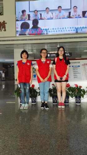 当换上红色志愿马甲的时候,3位同学的责任感油然而生。在那一刻,同学们成为了逸夫医院的一份子,成了白衣天使最好的助手。