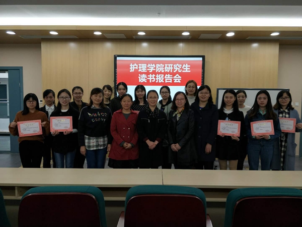 10月25日下午,2016级护理硕士研究生读书报告会比赛在学海楼C503举行。本届读书报告比赛共有14位2016级硕士生参加,我院研究生导师担任评委,2017级硕士研究生到场学习。作为我院研究生学习的重要环节之一,举办读书报告会能够在研究生中营造良好的学习氛围,培养和形成比、赶、超的学习风气,塑造研究生刻苦钻研的精神,提升创新科研能力及流畅表达讲座的能力,进一步提升研究生培养质量。