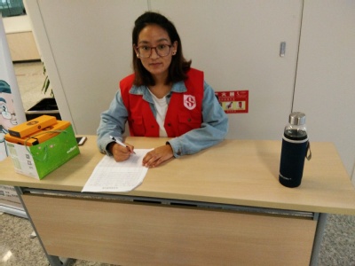 9月29日下午,在队长泽仁措姆的带领下,许文浍、孟令瑞、杨嘉慧3名同学来到了逸夫医院,在与志愿者负责人郭老师交接签到后,志愿者们换上了红马甲来到了各自的岗位上开始了下午的志愿之旅。