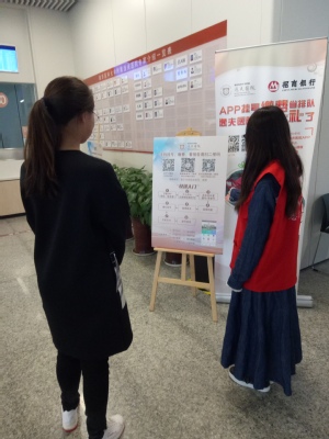 APP宣传岗位的志愿者到位后,准备好精美的小礼品站在了宣传牌的一边,向路过或者对此表现出兴趣的患者及家属进行了详细的说明和指导并且向他们解释了微信支付宝及app三种方式的区别,给予建议。在人流量最大的时间段向在排队等候挂号的患者或家属提供建议,提供网上挂号的方式。每一位成功在网上挂号的患者都得到了一份精美的小礼品。