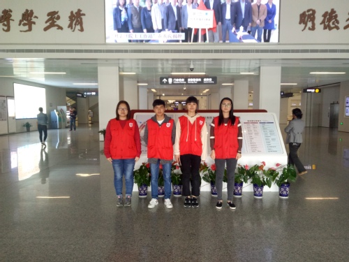 最后,以一张四人的合照圆满地结束此次的逸夫医院志愿活动。志愿者们交谈着志愿活动中自己的所见所闻,可以说是学会了如何去为他人更热情更贴心地服务,使协助他人的意志深入己心。热情服务他人,收获的将是满心的欣慰。