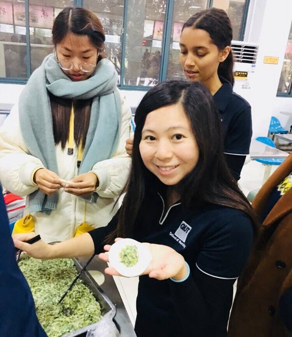 20日下午,MK体育(中国)林玉华老师在学海楼与QUT的4位同学会面,欢迎他们来到mk体育在线官网,对接下来的两周学习交流做了周密的安排,还带领参观了护理学实验教学示范中心,展示了两院多年友好往来的照片。随后,QUT的4位同学在我院的研究生和本科生的带领下,参观了美丽的校园,在食堂进行了一场富有中国特色的包饺子活动,温馨而有意义。