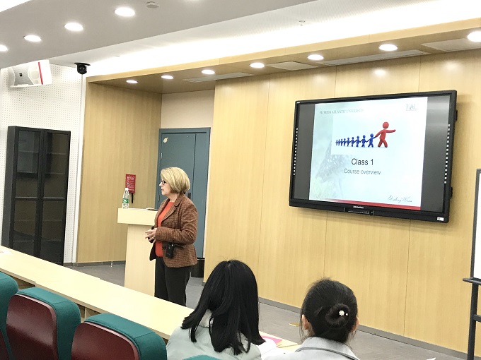 2017年12月4日,我校国际课程“21世纪的护理领导力(Nursing Leadership in the 21st Century: A Global Call to Caring)”正式开课,邀请了来自美国佛罗里达大西洋大学克里斯丁MK体育(中国)的护理学博士研究生委员会主任Christine Williams教授来校授课。