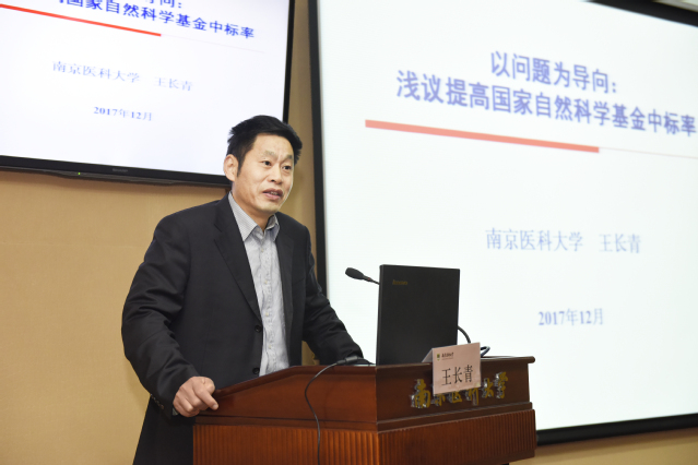 校党委书记王长青教授《以问题为导向,围绕如何提高国家自然科学基金中标率》为题作了专题辅导报告。他从申报者、合作者、评审者三个角色交流了申报基金的体会,从发现问题、凝练问题、演绎问题、写作要点、避免错误、寻求合作等方面作了详细而针对性的指导。