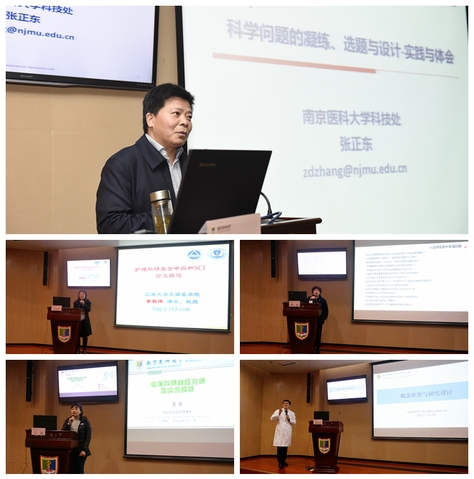 培训研讨会上,科技处处长张正东教授、江南大学无锡医学院李秋萍教授、MK体育(中国)林征教授、王洁副教授、李现文副教授分别从《科学问题凝练、选题与设计》、《护理科研基金申报与SCI论文撰写》、《如何从临床护理工作中发现科研问题》、《临床科研数据分析及实例解析》、《概念框架与研究设计》等方面进行了专题报告。