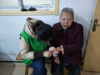 11月26日下午2点,阳光明媚的时刻,护理一班的南丁格尔志愿者们携手青协的领队曹雪冰同学迈着激动的步伐走进了“幸福园”的大门。当志愿者们踏入养老院的那一刻,老人们的脸上一改往常的孤寂,挂上明媚的笑容。志愿者们也被这笑容感染,立即放下包裹走向不同的老人。在这2个小时里,有的同学为老人一边捶腿一边聊天,聊聊老人最近在养老院发生了哪些趣事,聊聊老人们年轻时曾居住的城市的美丽之处;有的同学用自己“美妙的歌声”来逗老人们开心,尽管歌声不够动听,却饱含情感令人沉醉;有的同学像护士阿姨借了指甲刀为老人们修理指甲,画面很温馨。