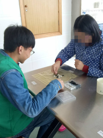 一进门,志愿者们就受到病人们的欢迎。首先,先进行了套圈领奖品活动,这也是病人们最喜欢的活动了。病人们一个个自发地排起了队,等着志愿者发圈。得到礼品的人很高兴,没有套到礼品的也不气馁,继续排队。套圈活动结束后,志愿者们也各自拿着道具去陪伴病人了,有的同学会和病人一起画画,有的同学会陪病人下五子棋,教病人玩魔方,有的同学会和病人打牌,打牌的过程中也会亲切地询问志愿者们的一些情况,比如:年龄多大了呀、家是哪的呀、志愿者也很乐意回答。活动结束前,大家还欣赏了一个病人的独唱。