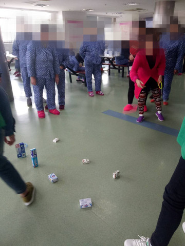 活动开始前,志愿者们在活动室内进行了签到和用物准备。因为医院主要收治精神病人,为保障并病人们的安全,志愿者们非常细心地进行了用物清点,之后志愿者进行了人员的分配,有五位志愿者到了康复区,其他六位志愿者去了精神病三区。